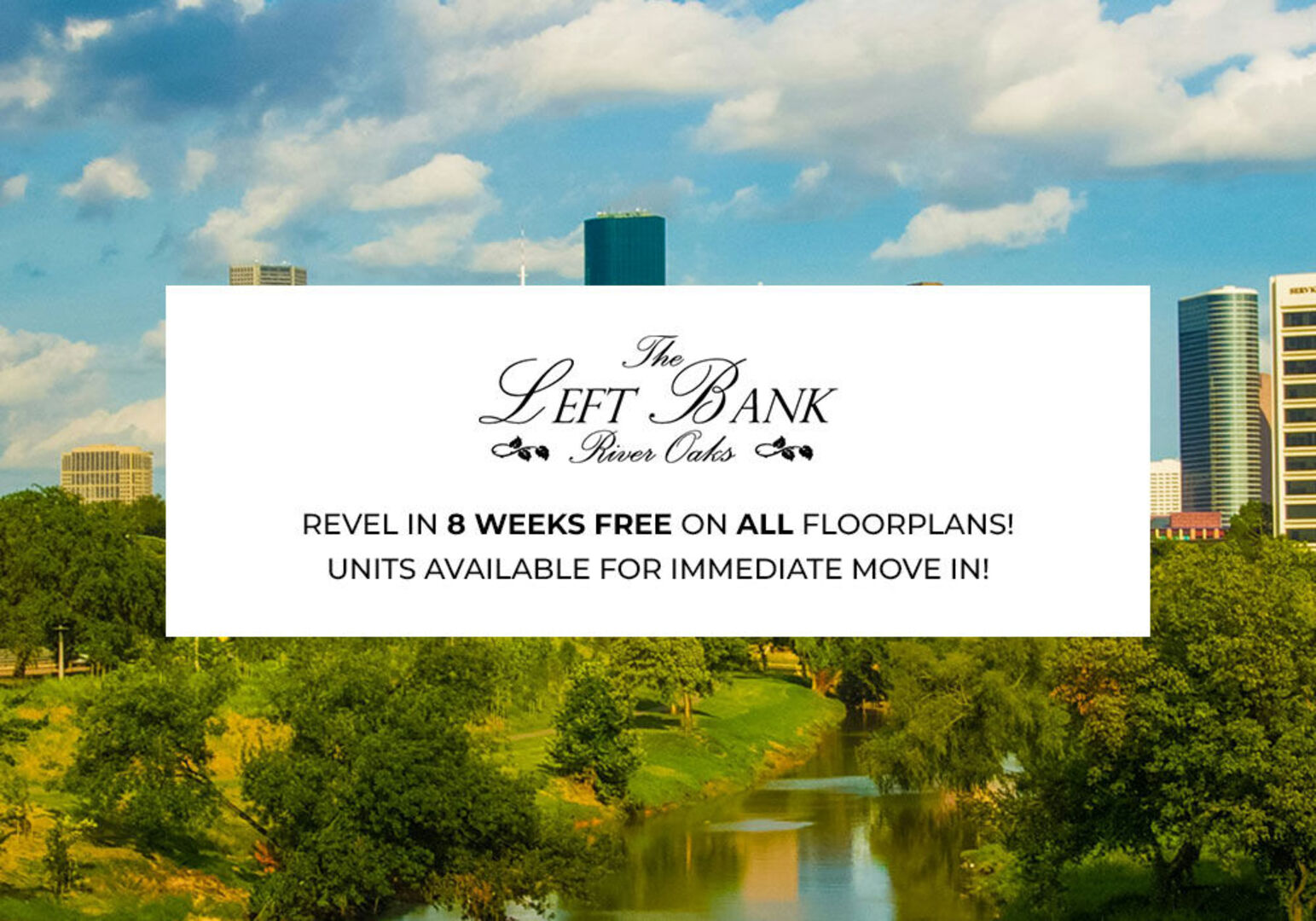 Welcome to The Left Bank River Oaks Situated On The Banks of Buffalo Bayou Between River Oaks and Memorial Park